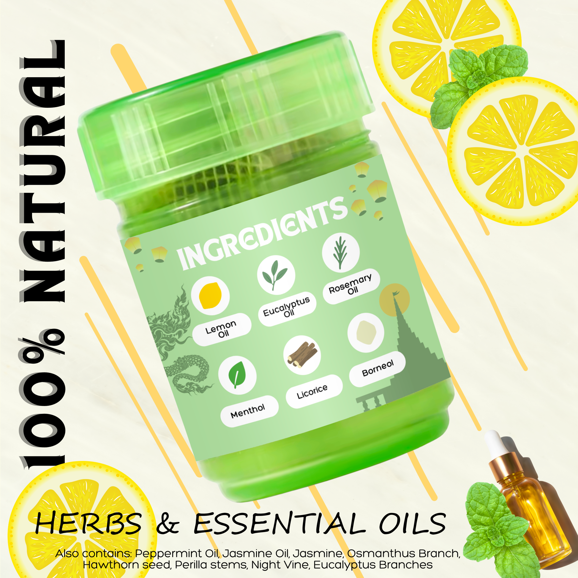 The Zesty Lemon πŸ‹ β€” Energiser⚑️ β€” a crisp, citrus aromatic burst to awaken the senses. 100% natural on-the-go wellness crafted from herbs + essential oils like Eucalyptus, Peppermint, Jasmine, Borneol, Menthol & Rosemary β€” scents celebrated in aromatherapy for their bright, invigorating properties.