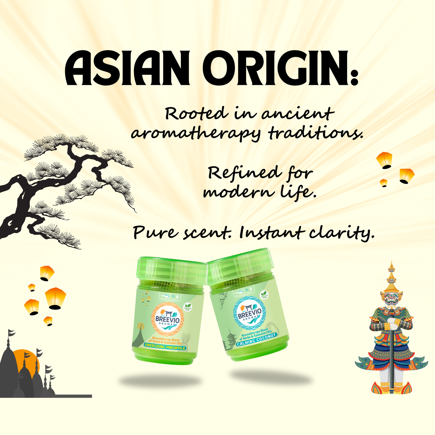 Breevio brings the time-honoured aromatherapy practices of ancient Asia β from Thailand and beyond β into your daily life. Our refined herbal blends are crafted to deliver pure, instant wellness for todayβs fast-paced world.